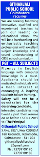 Gitanjali Public School, Coimbatore, Tamilnadu has advertised in the HINDU newspaper for the recruitment of Teaching job vacancies. Interested and eligible job aspirants are requested to apply within 16th October 2019. Check out further more details below.