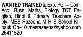 MES Razeena M H S School, Chennai, Tamil Nadu has advertised in THE HINDU newspaper for the recruitment of Teachers Vacancies. Interested and eligible job aspirants are requested to apply immediately. Check out further more details below.